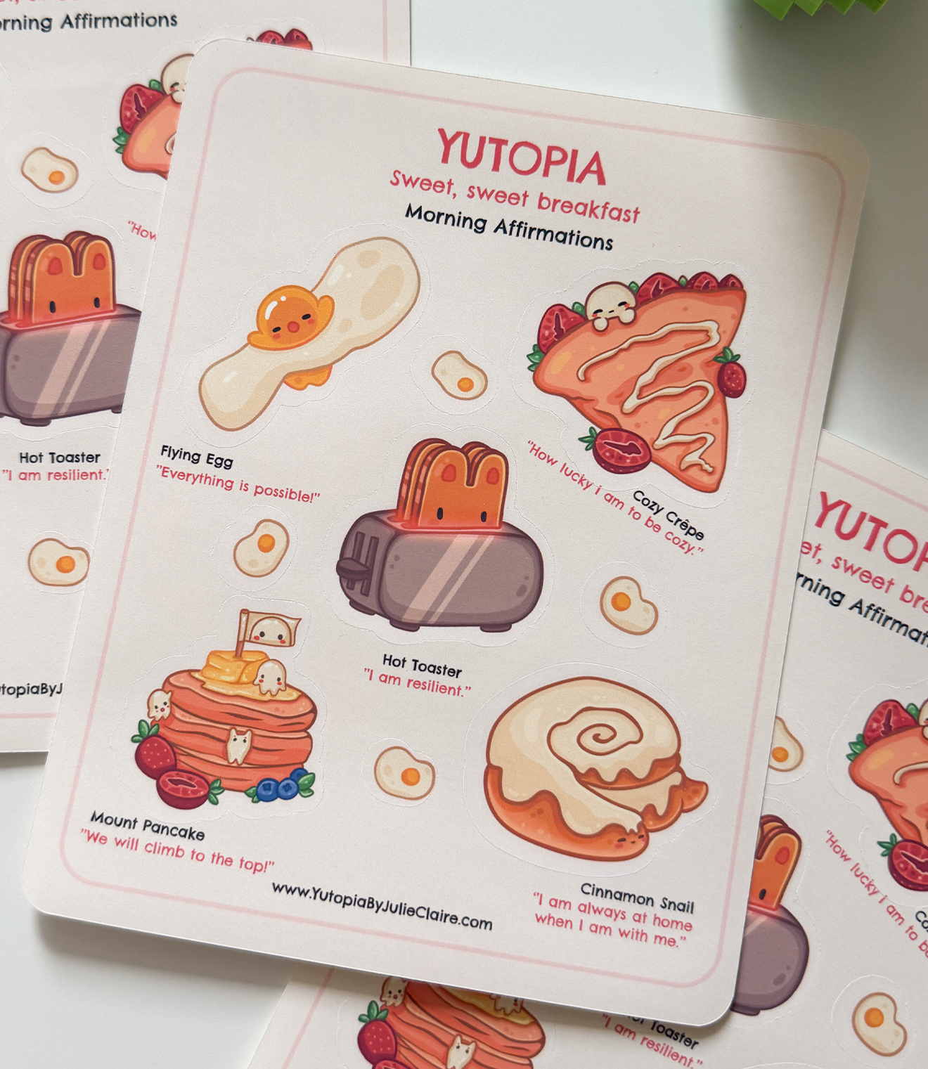 Say good morning to this sticker sheet. To every sticker there is a cute illustration that is meant to lift you up in the morning, like mount pancake that encourages you to climb to the top. 🍳 🌞